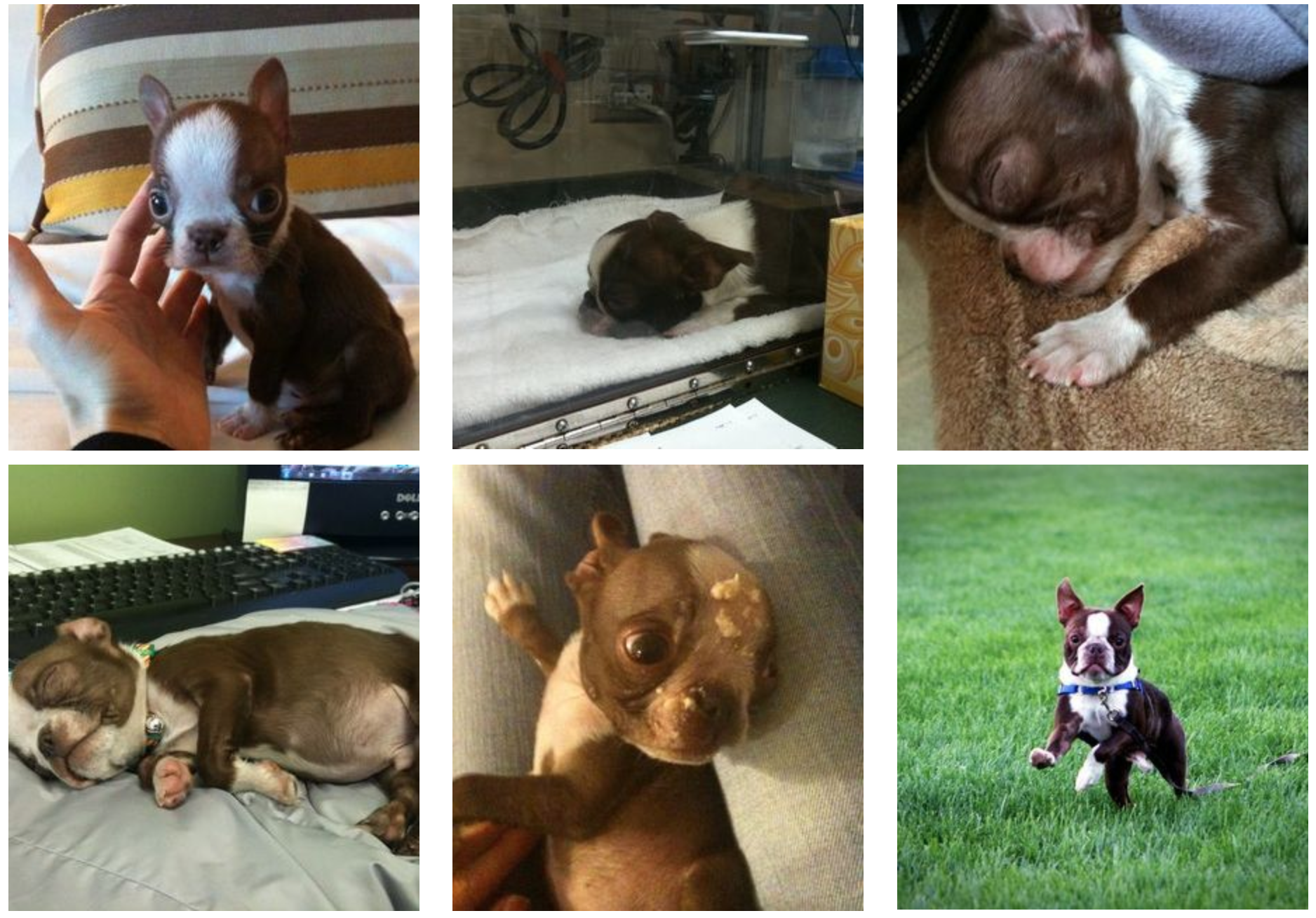She was told after several trips to the vet clinic that he was ‘failing to thrive’. He had pneumonia, a congenital birth defect of a narrow and collapsing trachea, giardia, round worm…and to expect the worst, he could succumbs to his ailments at moment. She was advised to put him down. He lost .25 pounds, dropping to just 1 pound. He was very lethargic and even after trying to get him to eat on a two hour schedule throughout the night and feeding him with a water dropper and milk supplements to keep him hydrated, he barely had the strength to lift his head in the morning. Her biggest fear was that he was suffering. He wanted to play and he was in such good fighting spirits, he was just incredibly week and it was obvious by looking at him that he was a pretty sick puppy.